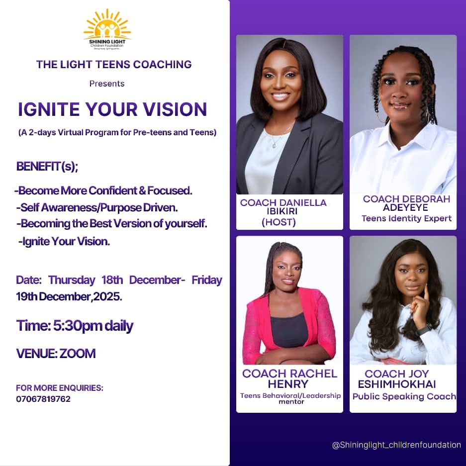 Join us for Ignite Your Vision — a transformational program designed to equip pre-teens and teenagers with clarity, purpose, confidence, and emotional strength.